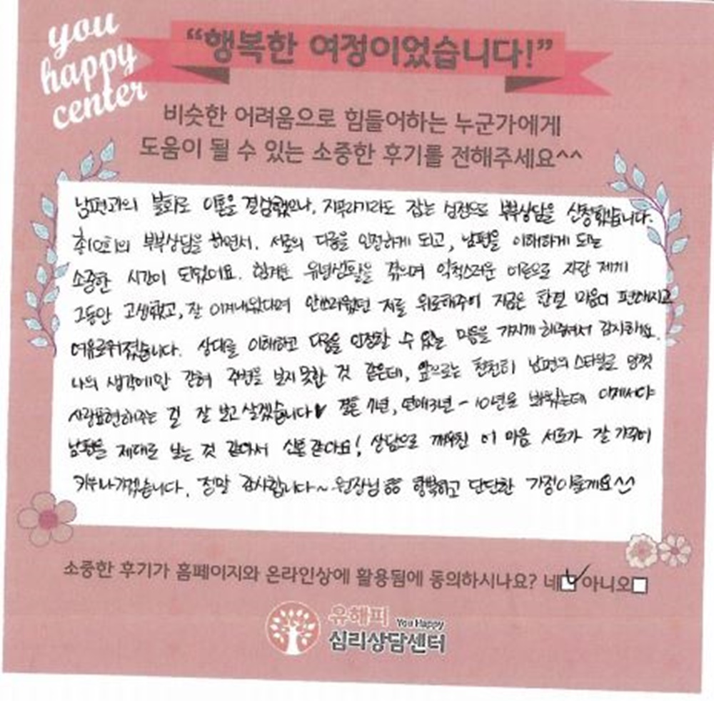 ★BEST 상담후기★ 30대 부부상담 후기(아내)