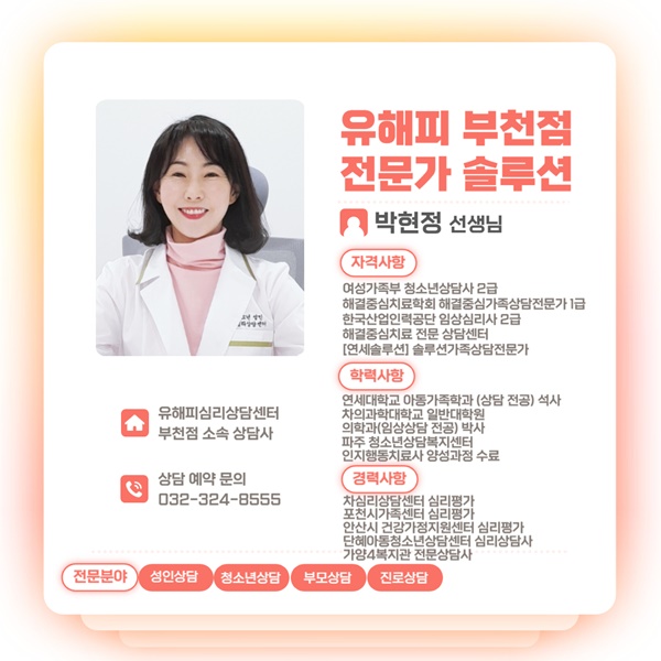 유해피심리상담센터 부천센터 박현정 상담사입니다 :-)