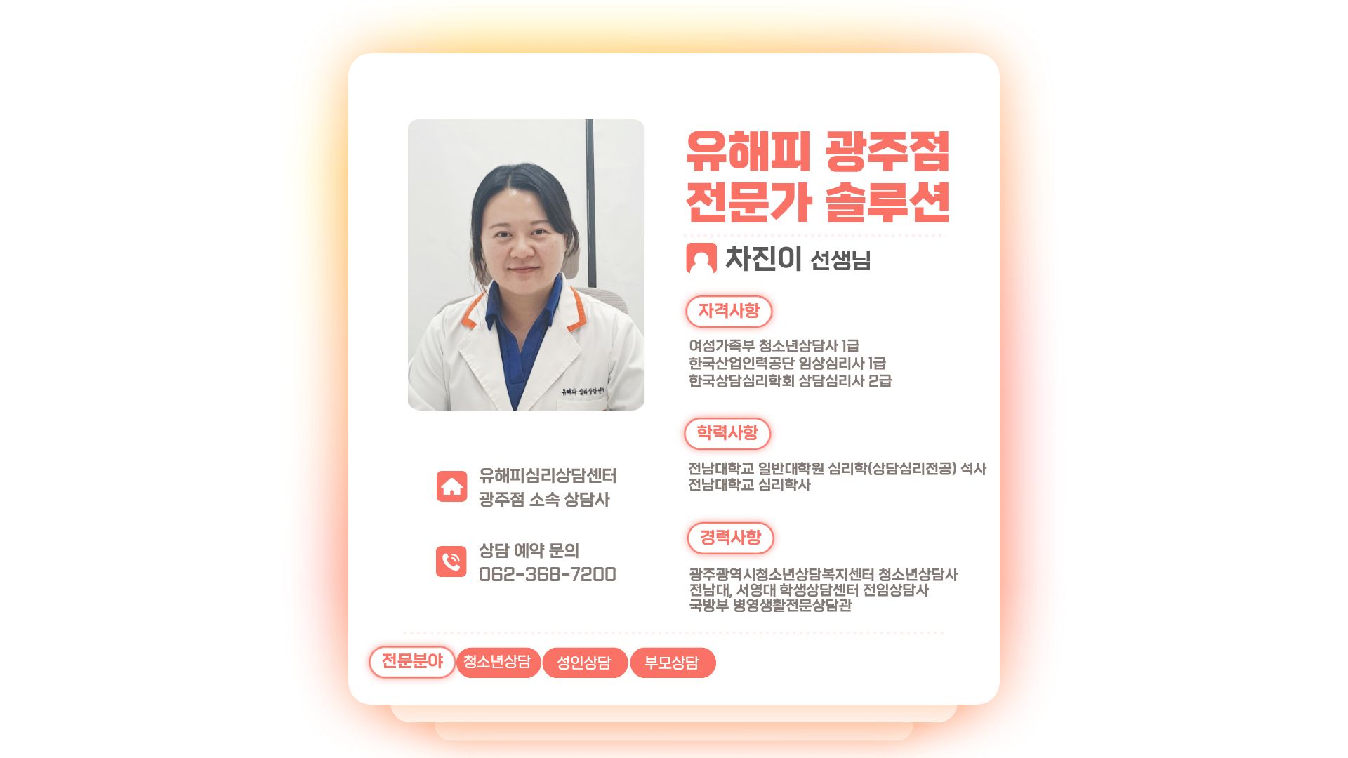 유해피심리상담센터 광주센터 차진이 상담사입니다 :-)