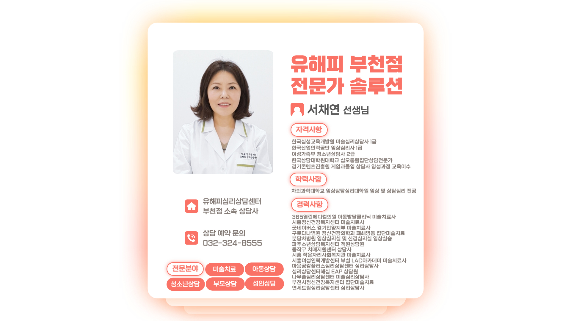 유해피심리상담센터 부천점 서채연 상담사입니다 :-)