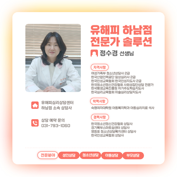 유해피심리상담센터 하남센터 정수경 상담사입니다 :-)