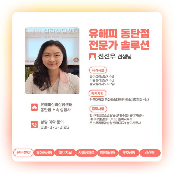 유해피심리상담센터 동탄센터 전선우 상담사입니다 :-)