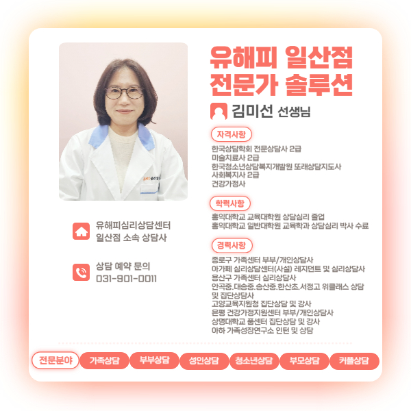 유해피심리상담센터 일산센터 김미선 상담사입니다 :-)