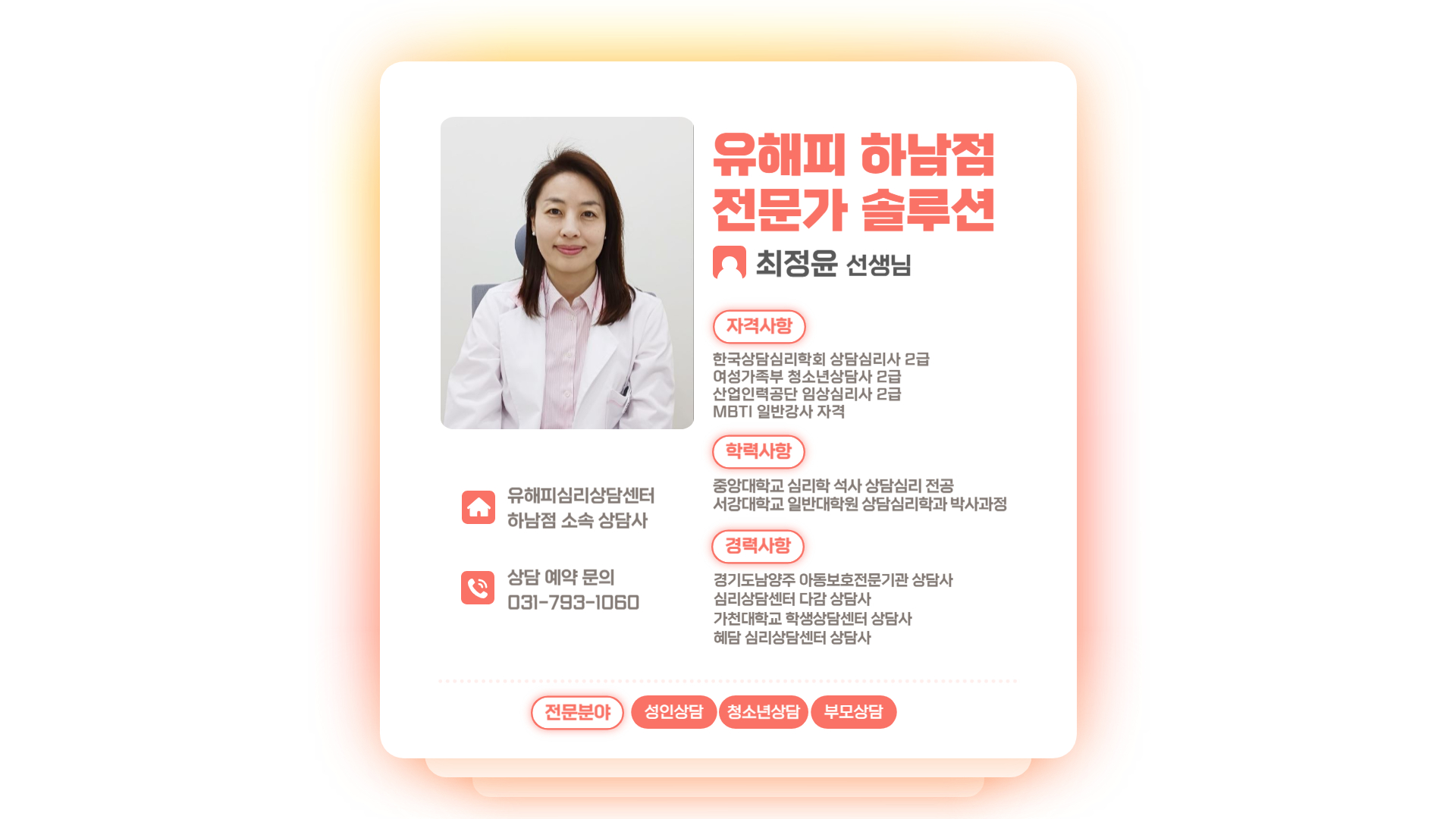 유해피심리상담센터 하남센터 최정윤 상담사입니다 :-)
