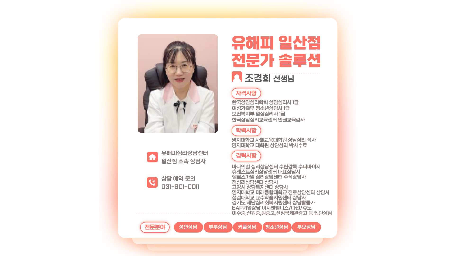 유해피심리상담센터 일산센터 조경희 상담사입니다 :-)