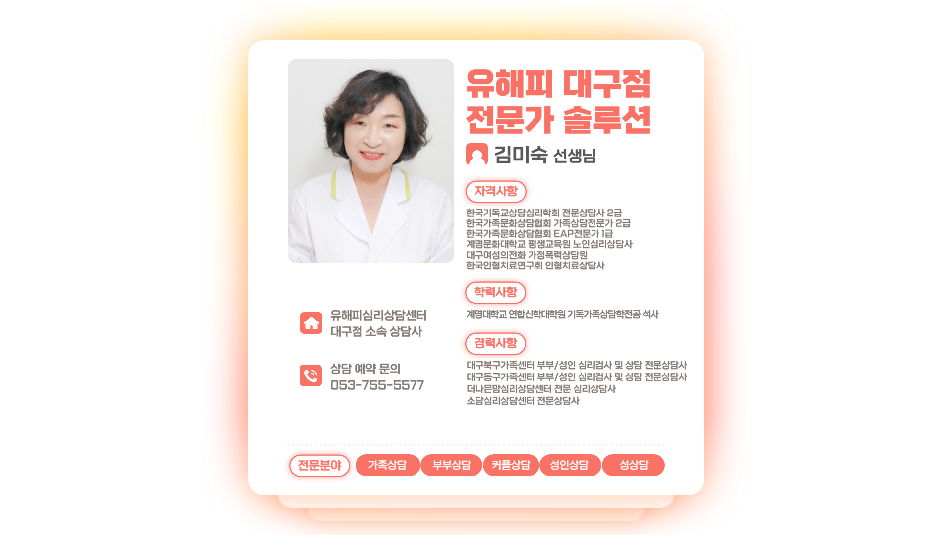 유해피심리상담센터 대구센터 김미숙 상담사입니다 :-)