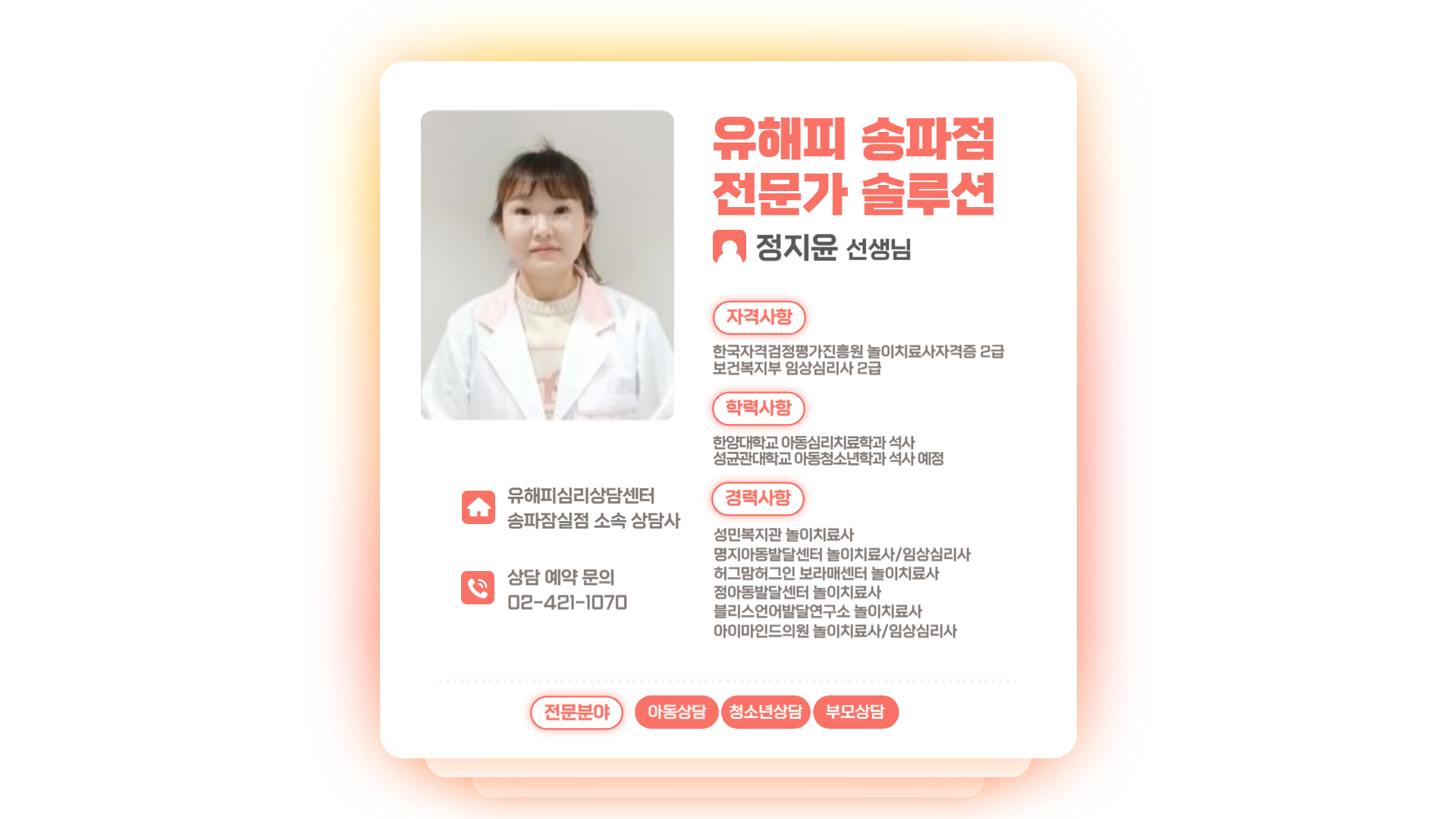 유해피심리상담센터 송파잠실센터 정지윤 상담사입니다 :-)
