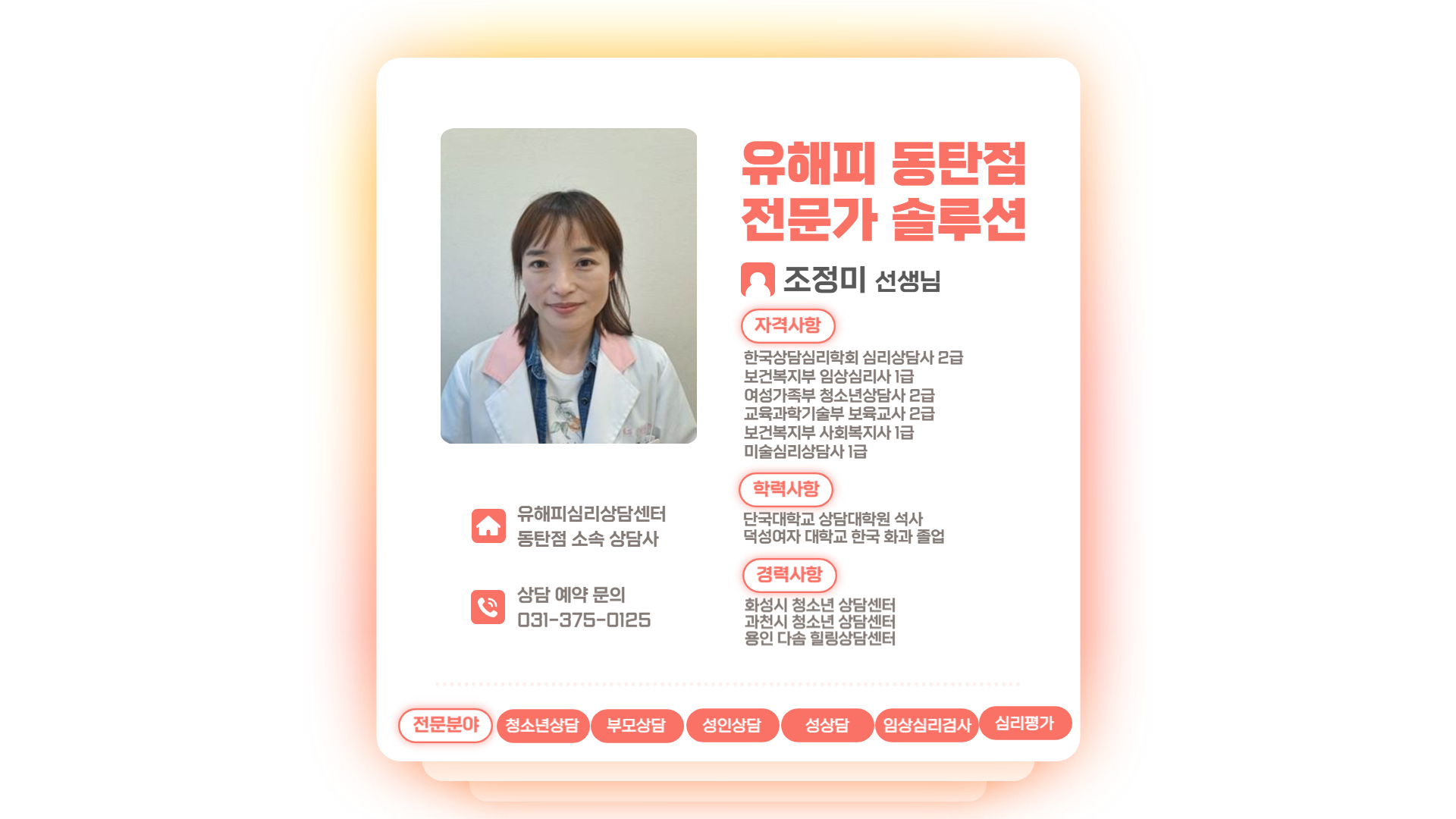 유해피심리상담센터 동탄센터 조정미 상담사입니다 :-)