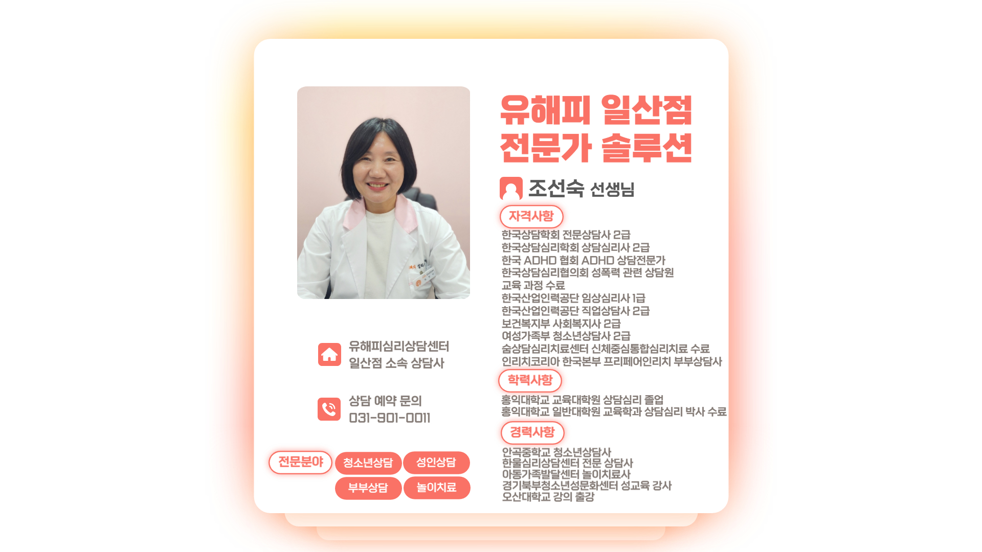 유해피심리상담센터 일산센터 조선숙 상담사입니다 :-)