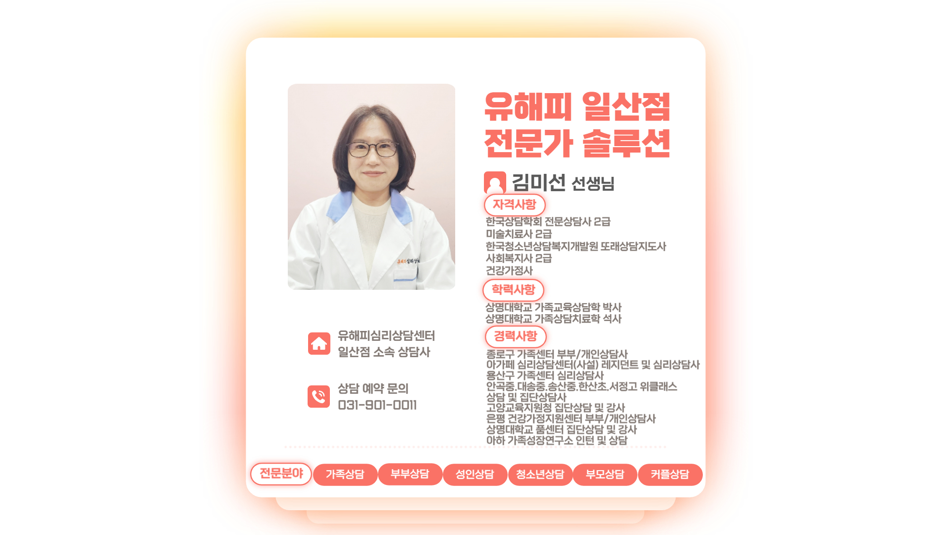 유해피심리상담센터 일산센터 김미선 상담사입니다 :-)
